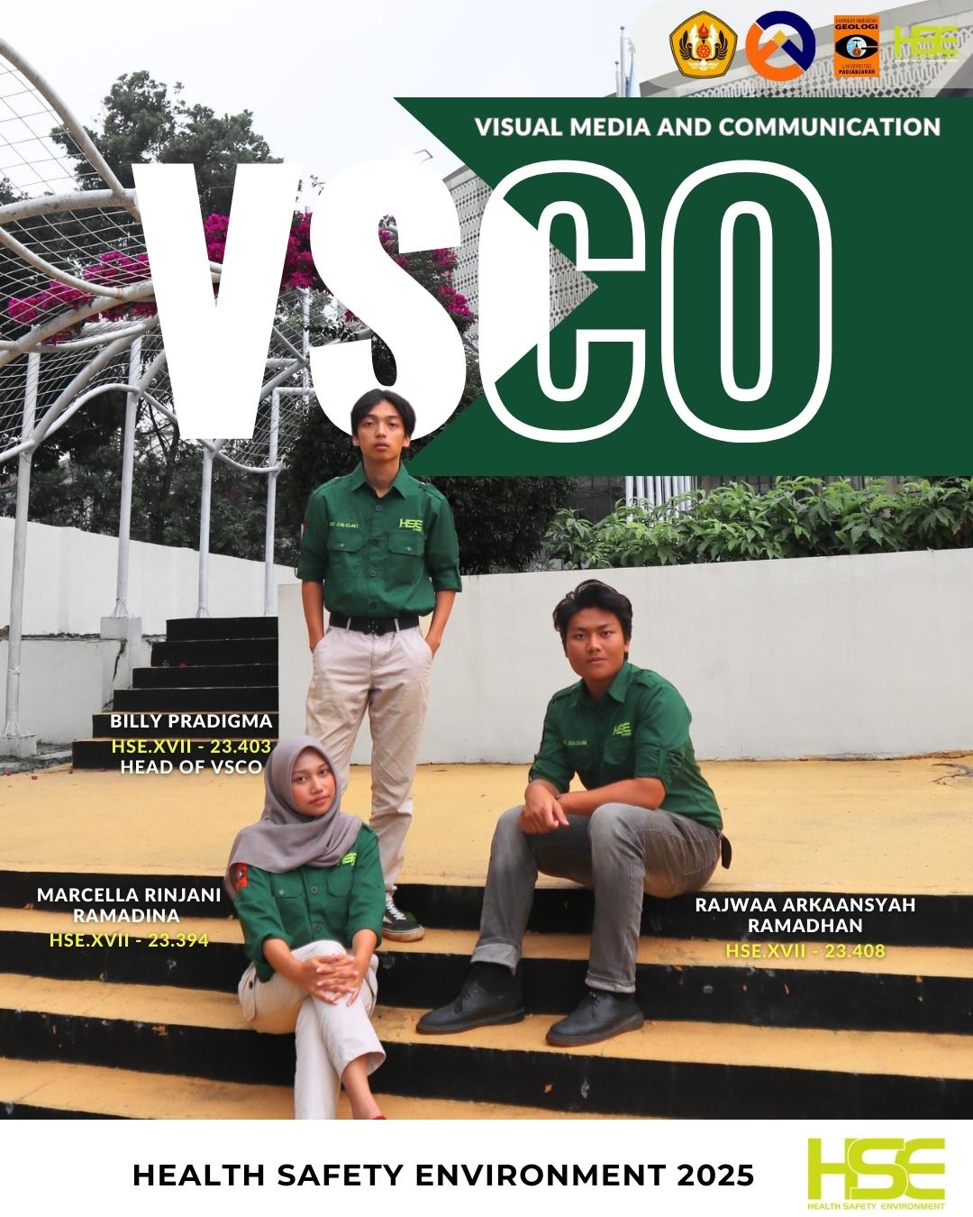 Terwujudnya HSE Geologi Unpad sebagai keluarga yang memiliki jiwa kepemimpinan dan kompeten dalam bidang kesehatan, keselamatan, dan lingkungan dengan menerapkan profesionalitas dalam bekerja dan berkegiatan.